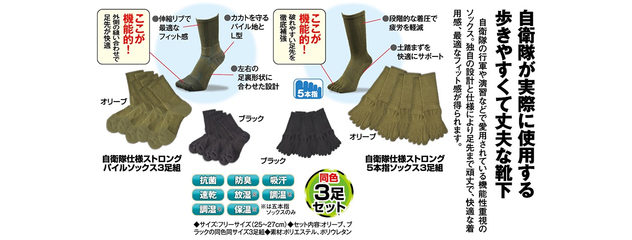 自衛隊仕様 ストロング5本指ソックス3足組 5%ポイント還元 - イーグルクラブ