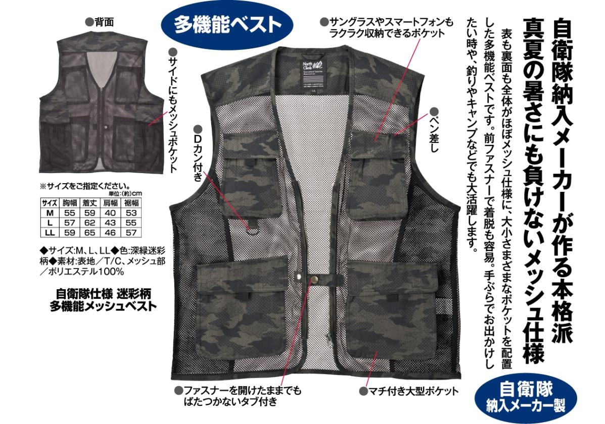 商品名:自衛隊仕様 迷彩柄多機能メッシュベスト